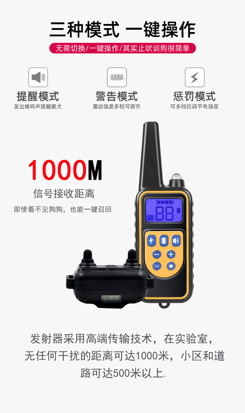 1. Quatro funções: tom de aviso, vibração, choque elétrico, luz de sinalização.
